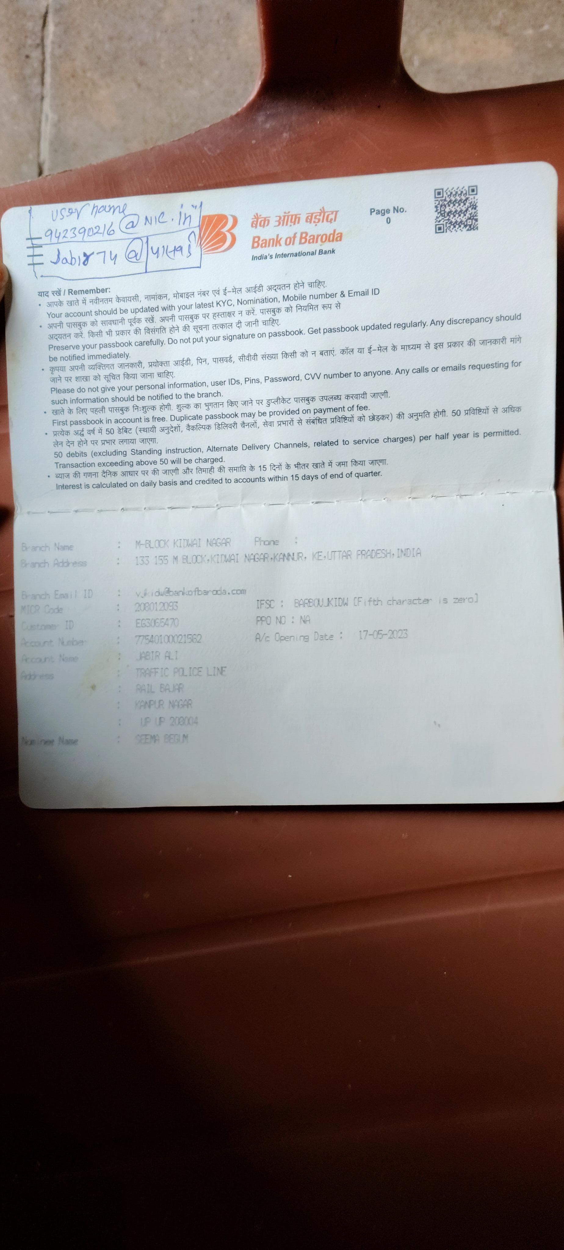 Account Name: Jabir ali Account Number: 77540100021562 IFSC: BARB0VJKIWD Bank Name: Bank of Baroda Bank Address: 133 155 M BLOCK , KIDWAI NAGAR ,KANNUR, KE, UTTAR PRADESH , INDIA Passbook: Download |